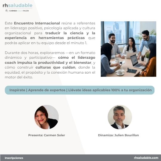 Durante dos horas, exploraremos —en un formato dinámico y participativo— cómo el liderazgo coach impulsa la productividad y el bienestar, y cómo construir culturas que cuidan, donde la equidad, el propósito y la conexión humana son el motor del éxito.